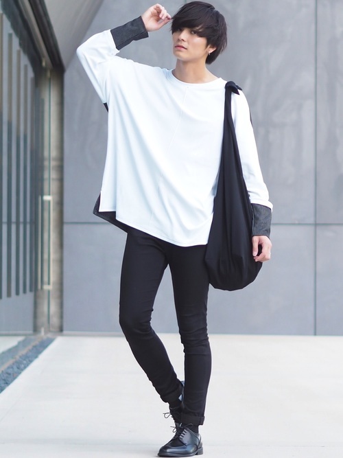 よりワイドに見えるワッフルレイヤーのトップスです。ビッグシルエットコーデをカジュアルに着こなしたいときには、とてもおすすめのコーデになります。ホワイトカラーを選ぶことで、よりビッグ感が増しまますのでかっこいいです。ゆったり着こなしてみましょう。