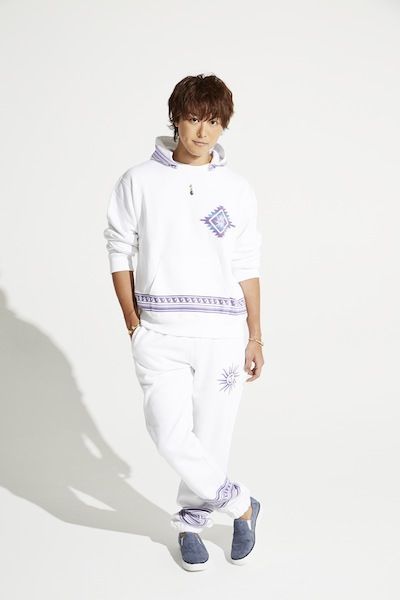 可愛い雰囲気のあるスウェットのセットアップです。ゆったりめのパンツですが、身長が高いので縦のラインが強調されています。EXILE*TAKAHIROのラフなファッションが好きな人におすすめです。私服でスウェットを着る人からも注目されています。