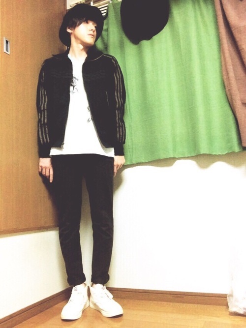 スポーティーなジャケットをメインにして白と黒で構成したモノトーンコーデです。パンツにスキニーアイテムをセレクトすることで、より細身に見せることに成功。ハットやTシャツなど、ハイブランドではなくてもこだわりのあるメンズアイテムがファッションを引き立てています。男らしい着こなしで女子にも好印象。