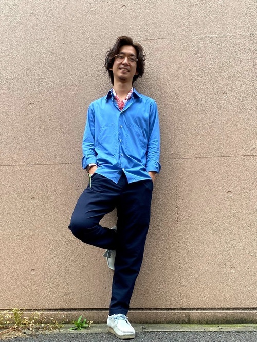 カラーシャツ×パンツ