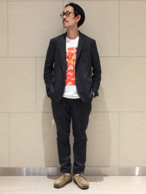 クラシカルな印象のあるジャケットコーデもシューズの選び方によって雰囲気がガラリと変わります。カジュアルダウンしたジャケットのセットアップはトレンドにもなっていますが、足元もブラウン系のワラビーブーツできっちり固めすぎずラフさを出した大人カジュアルコーデです。