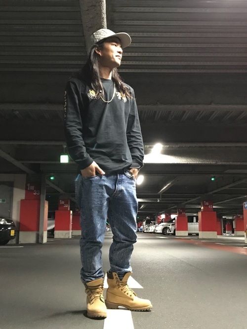 長袖のカットソーとライトブラウンのシックスインチブーツのメンズコーデは涼しくなった秋らしい組み合わせです。明るめのシックスインチブーツと暗めのジーンズとの明るさのバランスが良くかっこよく見えるメンズコーデです。