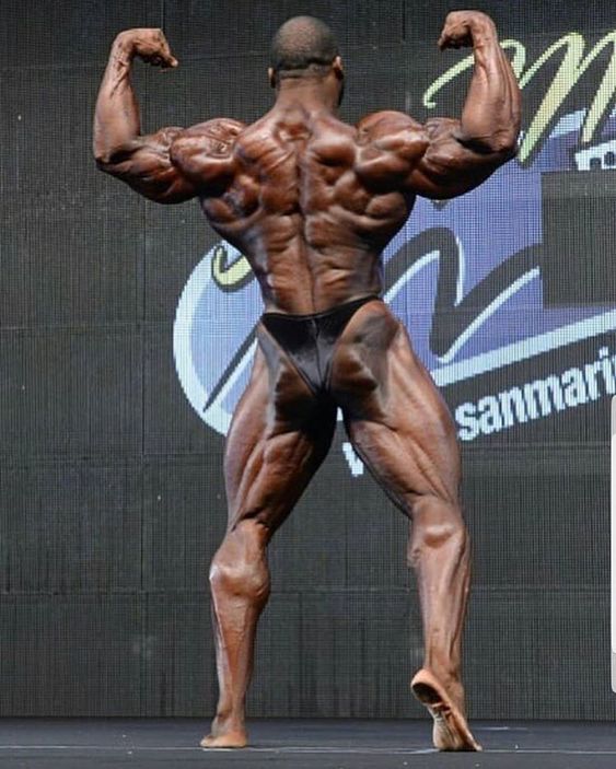 マクミランは、身長185cmとボディビルダーの中でも群を抜く高身長。足が長く、胴が短いため、肩から腕、腰に向かって筋肉が美しい逆三角形を描いています。