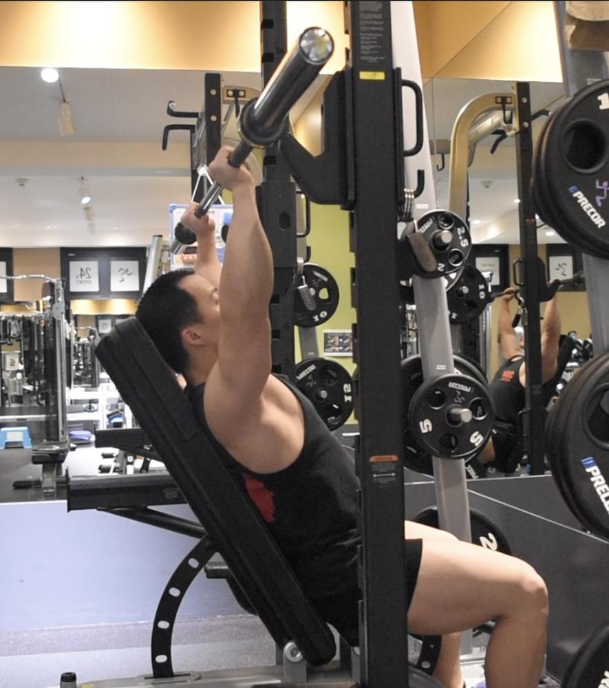 スミスマシンショルダープレスのやり方!肩に効く手幅・角度・向きなどコツを解説