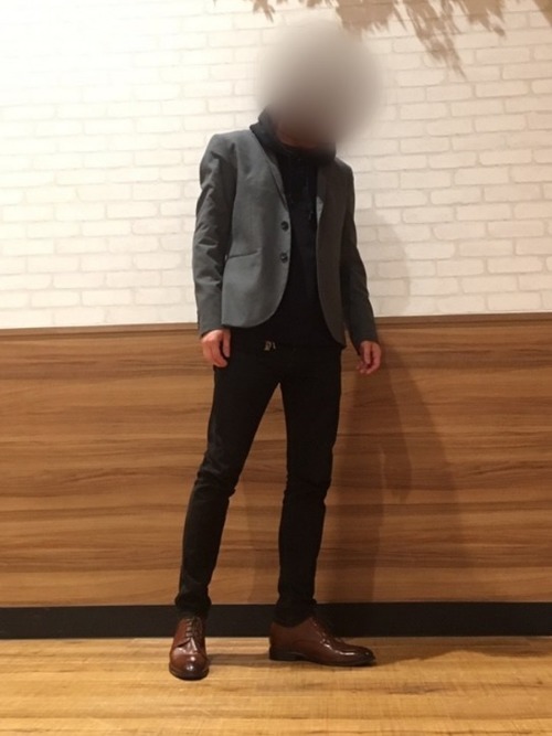 全体を黒とグレーでまとめた大人かっこいいシックコーデです。革靴を選ぶことできれいめな上品コーデにもなるので、大人のデート服としても活用できますよ。暗めのトーンでまとめることで、シルエットが引き締まって見えてスタイルもよく見せられるのでおすすめです。