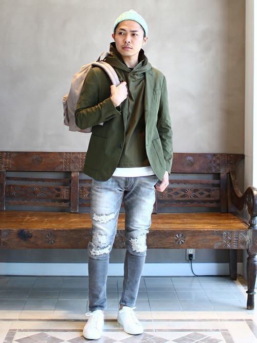 テーラードジャケット×パーカーの重ね着テクを覚えよう
