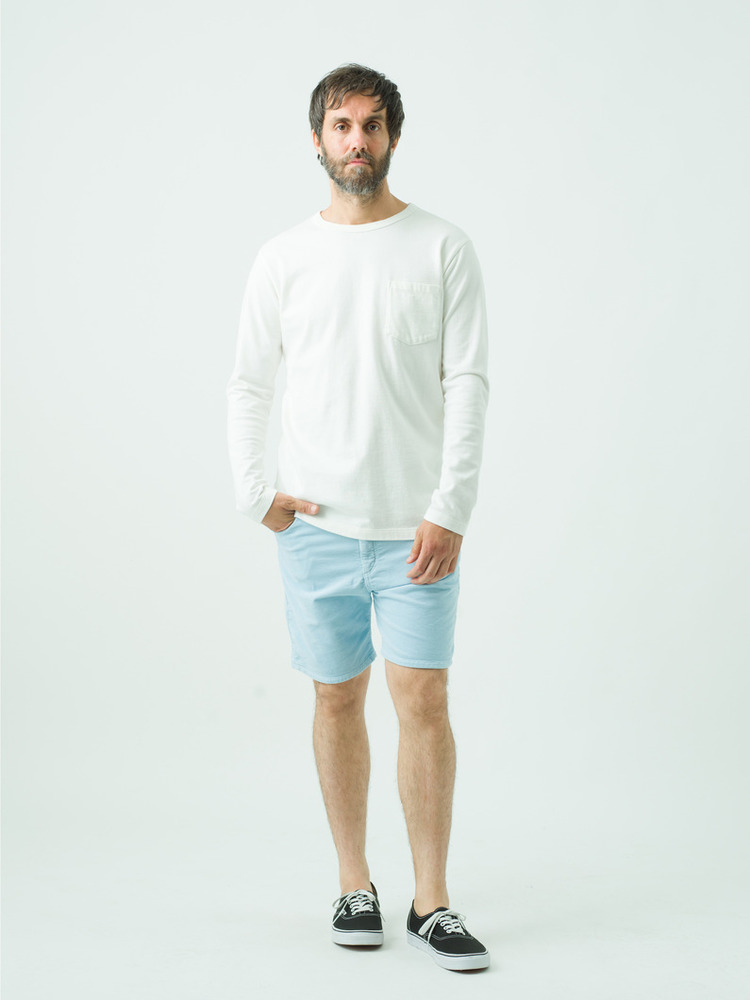 夏の西海岸ファッションの必須アイテムといえばハーフパンツです。その丈がおしゃれな西海岸ファッションの重要ポイントになります。膝位の丈になってしまうと、子供っぽさやストリート感が強くなってしまいうので注意が必要です。丈は画像くらいのものをオススメします。