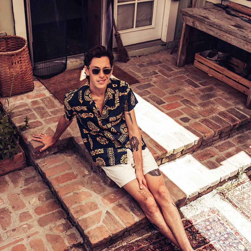 夏に活躍するハーフパンツは、西海岸の空気感を出したい場合は少し短めのものにすると良いでしょう。そうすることでストリート感やスケーター感が出ず、大人らしくなります。こちらのメンズコーデのようにラグジュアリーなサングラスを取り入れると、よりおしゃれなサーフスタイルに仕上がるでしょう。
