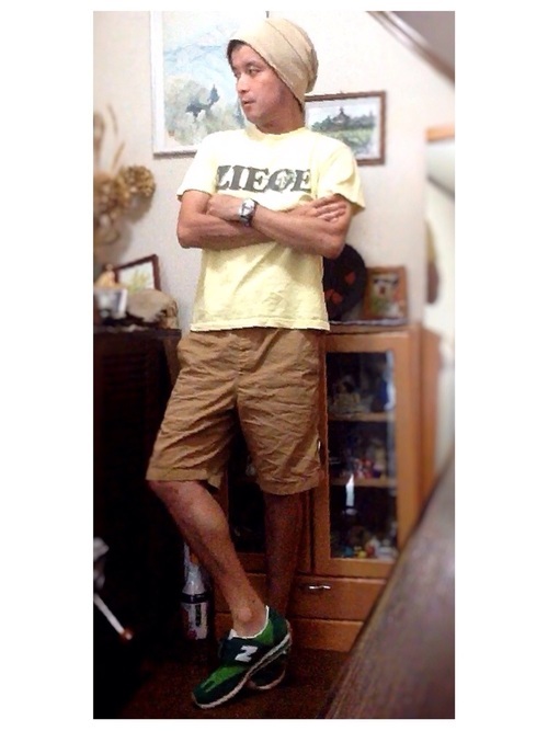 ホワイト系Tシャツ×イエロー系ハーフパンツ