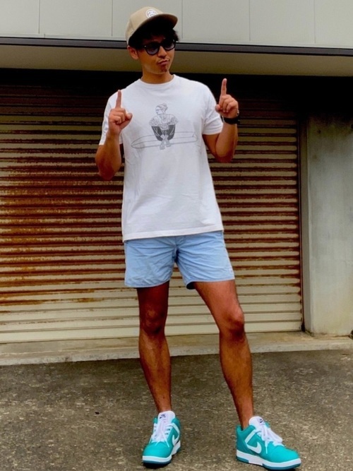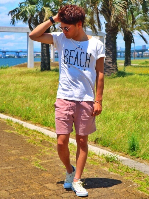 西海岸ファッションでも白Tシャツは定番のアイテム。一枚は持っていて損はありません。明るい色のハーフパンツと合わせるのも夏らしさが出るのでオススメです。