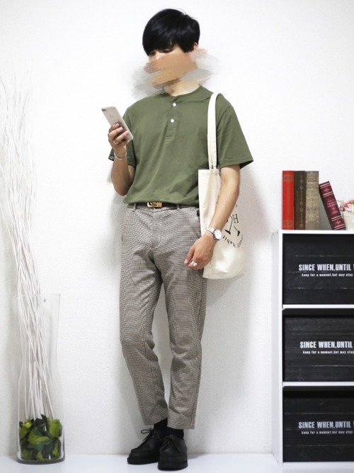 ヘンリーネックTシャツと言えば半袖の着こなしをよく見ますよね。そこでまずは半袖カットソーのメンズコーデを紹介します。