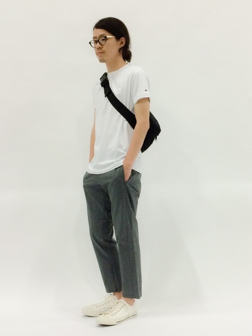 シンプルでリラックス感のあるコーデです。ラフな着こなしにボディバッグを合わせることで、アクセントになりメリハリがついています。
