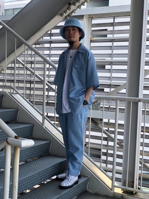 カットソーにシャツを羽織った、カジュアルでメンズコーデらしい着こなしです。パンツとカットソーだけだとラフすぎますが、そこにシャツを羽織ることできちっと感が加わっています。スニーカーで少し外しこなれ感が出ています。