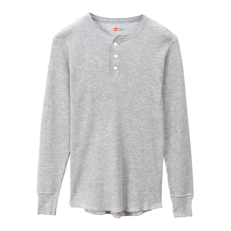 Hanes サーマル ヘンリーネックロングスリーブTシャツ