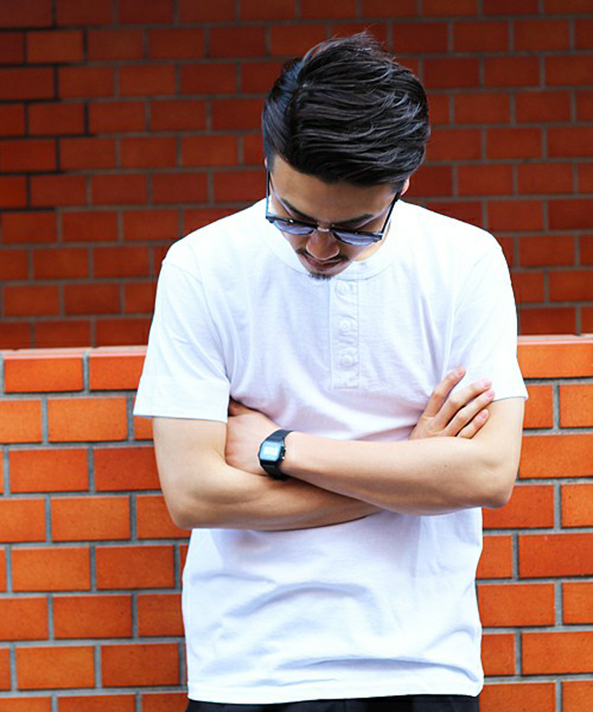 ヘンリーネックTシャツは男らしさやラフな印象などがありますが、実際は幅広いコーデに対応してくれるアイテムです。首元のボタンがアクセントになったり、ボタンの開閉で雰囲気が変わるなど万能に使えるアイテムです。