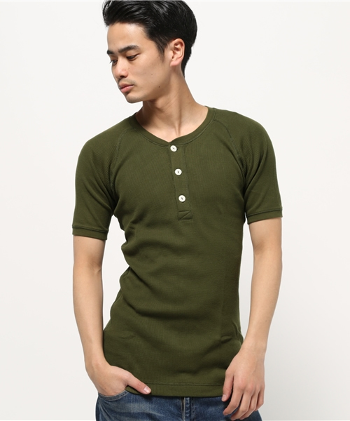 HOUSTON ヘンリーネック半袖ワッフルTシャツ