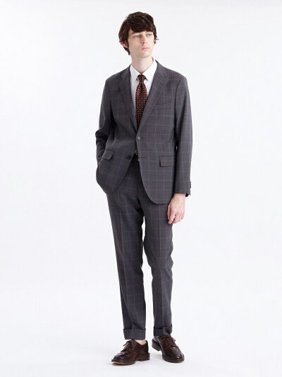 イギリスの伝統的な柄として知られるグレンチェックのスーツは、グレー系の色味が定番。こちらも遠目からは明るいグレーに見えるので、夏にはぴったりの柄です。グレンチェックのジャケットは、インナーに白シャツを合わせるだけで爽やかになり夏らしいスーツスタイルをつくることができます。