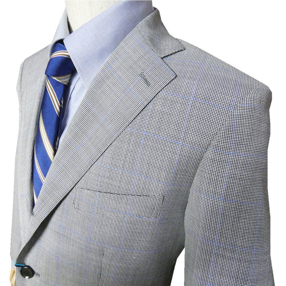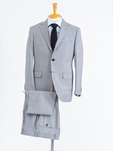 イギリス発祥の定番格子柄で、ハウンドトゥース(猟犬の牙)とも呼ばれる千鳥格子。遠目には無地の明るいグレーに見える控えめな柄で、着こなしに清涼感と遊び心をプラスしてくれます。柄物でありながら主張の強すぎない千鳥格子のスーツは、2着目のグレーをお探しの方にもおすすめの一着です。