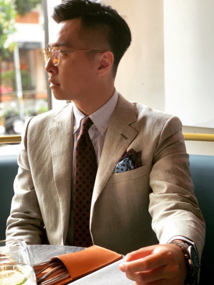 ベージュスーツ【夏用スーツのメンズコーデ】
