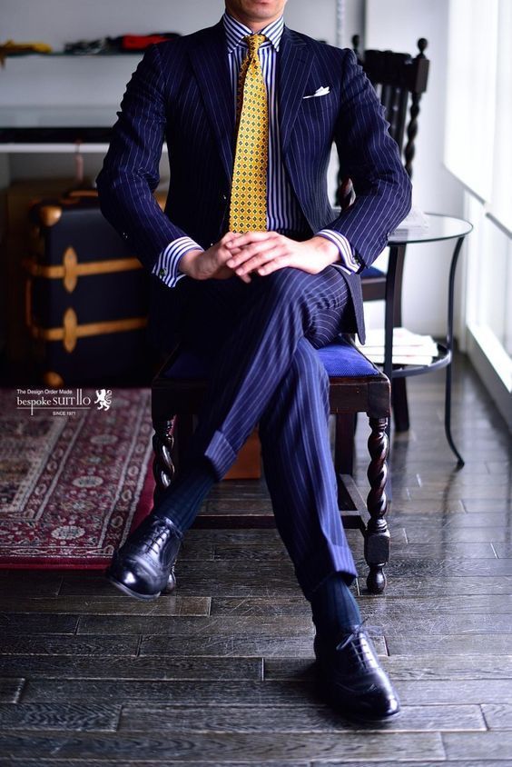 ネイビースーツにビビットカラーのネクタイを合わせた、遊び心のあるコーデです。ビビットカラーのネクタイは、首元にアクセントを加え快活な印象を与えてくれます。視覚的にも涼しげなので、夏のスーツスタイルにはぴったり。ネクタイとシャツの色を同系色で合わせて、コーデに統一感をだすのもポイントです。