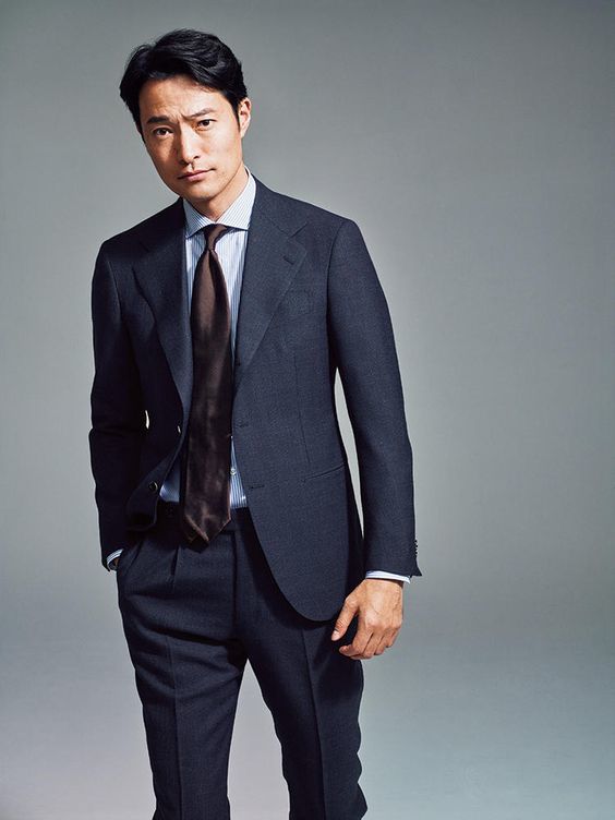 ベージュスーツに無地の白シャツを合わせた、清涼感のある夏らしいコーデです。シンプルな白シャツが、ベージュのもつ爽やかさを引き立てていますね。上まできっちりと留められたボタンと、ミニマルな着こなしが、清潔感と誠実さを印象づけてくれます。