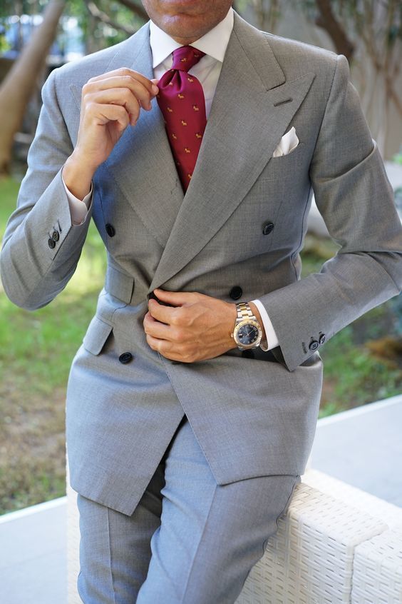 清涼感のある明るいグレーも夏用スーツにぴったりです。いちばん明るいアイスグレーは涼しげで夏に最適ですが、ビジネスシーンではカジュアルすぎる印象を与えることも。中間色であるライトグレーを選べばその不安は払拭できます。ただ、中間色はぼやけた印象もあるので、明るい青や赤のネクタイを合わせるなどコントラストをつけるとおしゃれに着こなせます。