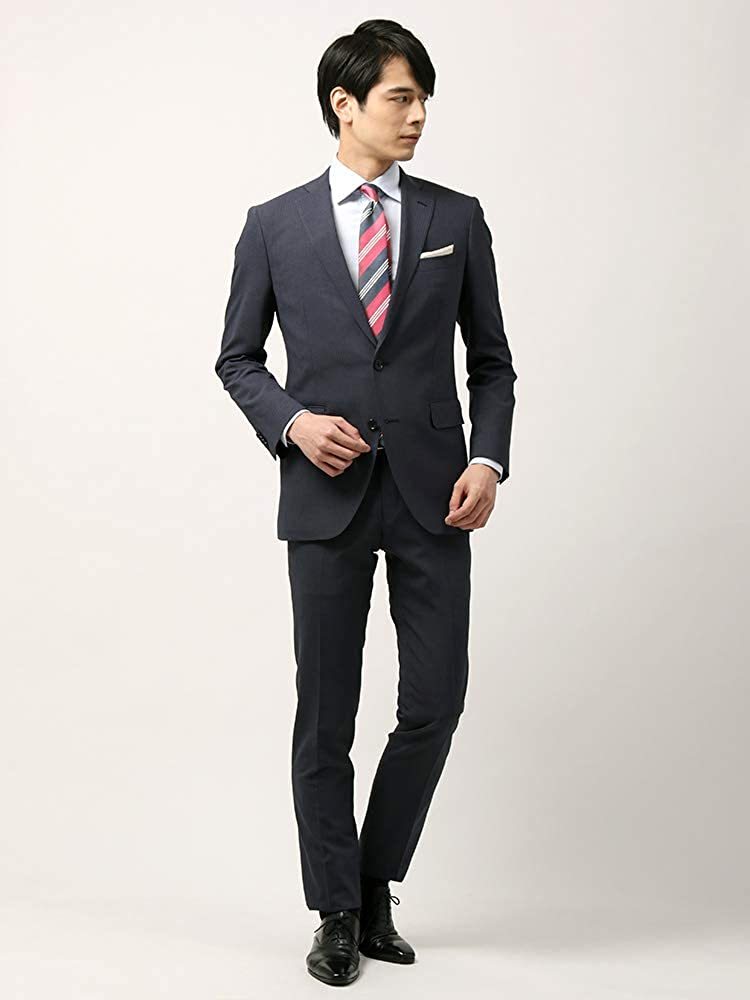 THE SUIT COMPANYが展開するこちらのスーツは、スポーツテイストをテーマにモダンなアレンジを加えたCH-14モデル。さらりとした肌触りで清涼感のある生地は、ストレッチ性が高いうえにシワにもなりにくいという優れもの。夏には嬉しいウォッシャブル仕様もついた、機能性の高いスーツです。一見すると無地に見える落ち着いた柄感も魅力のひとつ。
