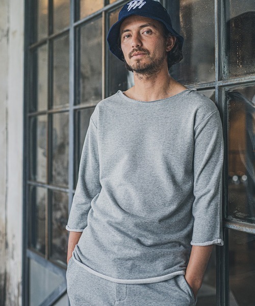 ベーシックラインが多いブランドCAMBIOの、スウェット生地を使った七分袖のボートネックカットソーです。袖や裾が切りっぱなし風になっていたり、スウェット素材で作られていたりと大人のリラックスコーデに最適な1枚です。ゆったりめのボートネックであり、袖が長すぎないため、インナーを入れるのもおすすめ。
