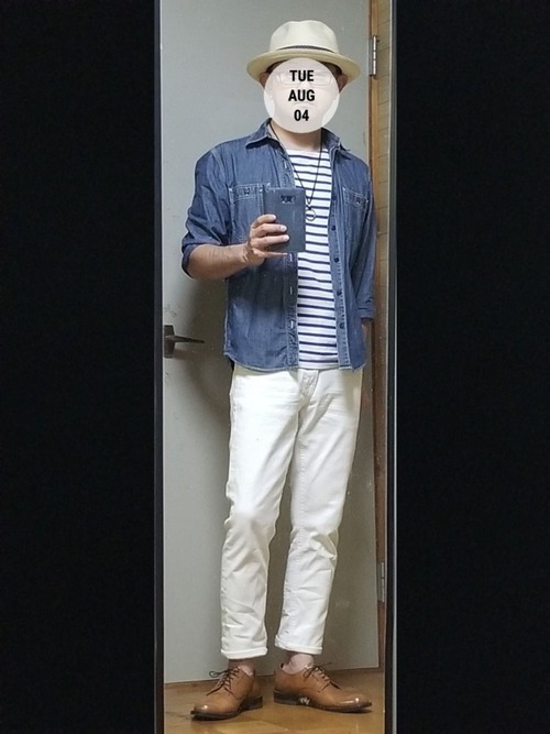 ボーダーのボートネックTシャツは、ホワイトパンツで合わせると爽やかなメンズコーデになります。また、デニムシャツを上から着ることで、清楚な雰囲気をプラスさせることもできます。