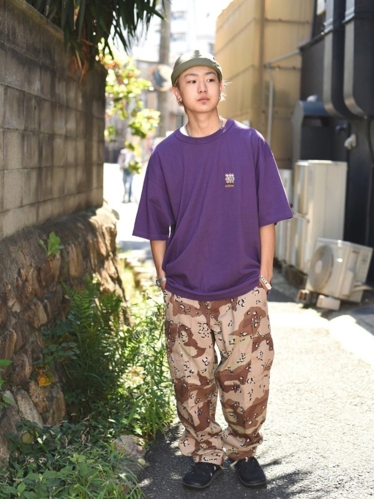 こちらはストリート臭漂う着こなしのミリタリーコーデです。トップス、パンツ共にオーバーサイズのアイテムを選ぶことによって、存在感抜群のストリートコーデに仕上がっています!