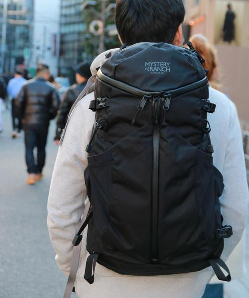 荷物を持ち運ぶならバックパックがおすすめ。こちらのMYSTERYRANCHブランドは米軍特殊部隊も採用している「究極のバックパック」として名高いブランドです。やや細長く、四角いフォルムは力強さと頼れるメンズの背中を語ります。