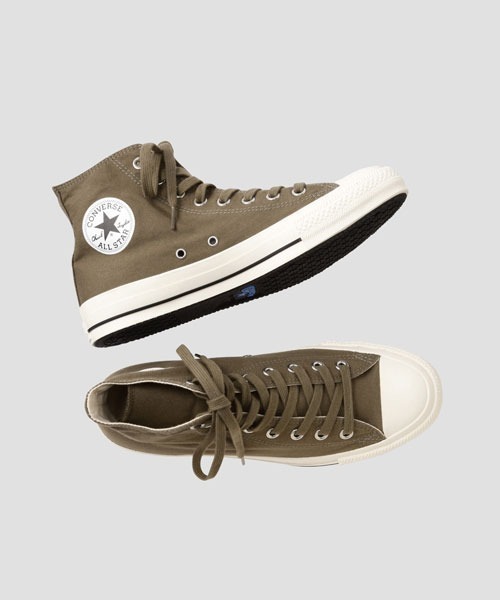 最後に足元を飾る靴の紹介です。長らく愛されているスニーカーブランド、コンバースのALLSTAR。ミリタリーにもぴったり合います。履くだけで、重すぎず、どこかスマートさを感じさせるコーデにしてくれます。