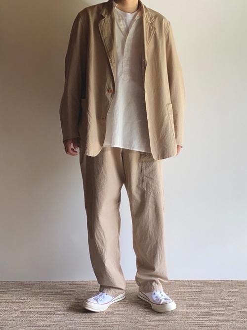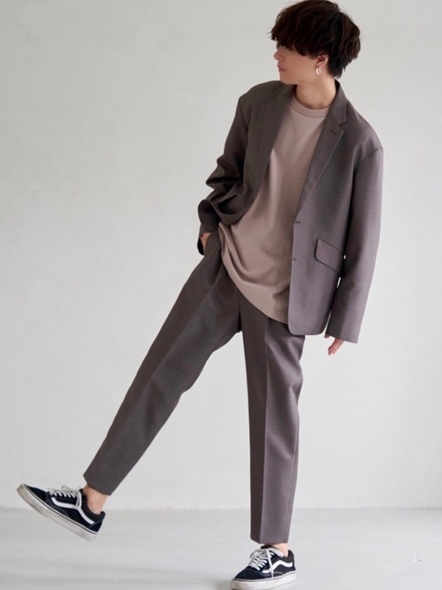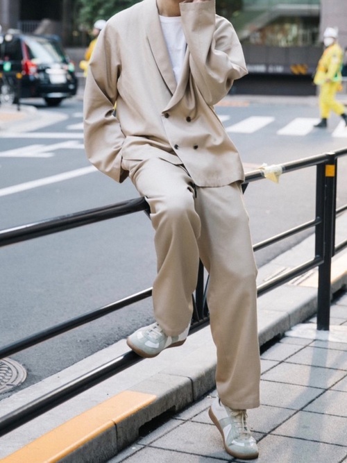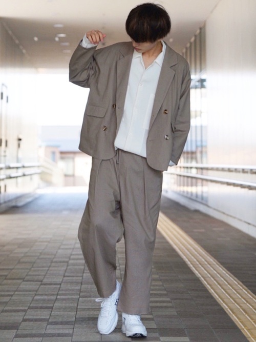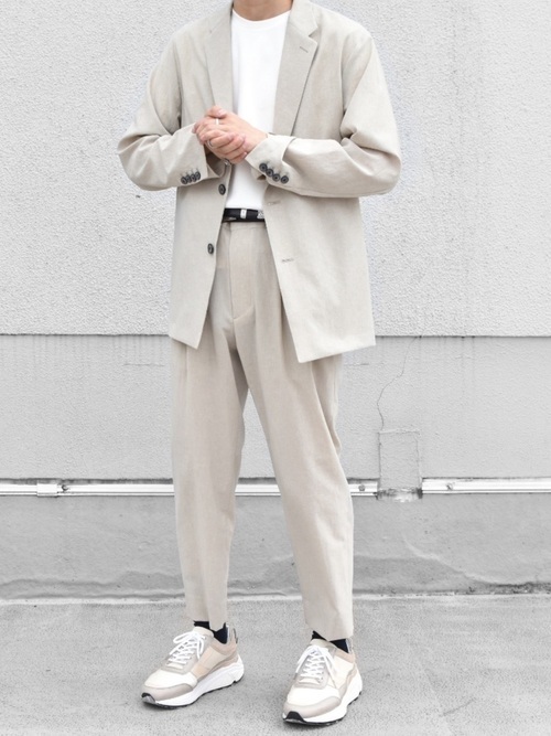 上下同じ生地を使用したセットアップもベージュならカジュアルでラフな印象を与えます。明るく柔らかい印象のがあるので、特に春夏におすすめコーデです。インナーやシューズもベージュで揃えるとワントーンコーデになり、おしゃれ上級者の風格が出せますよ。