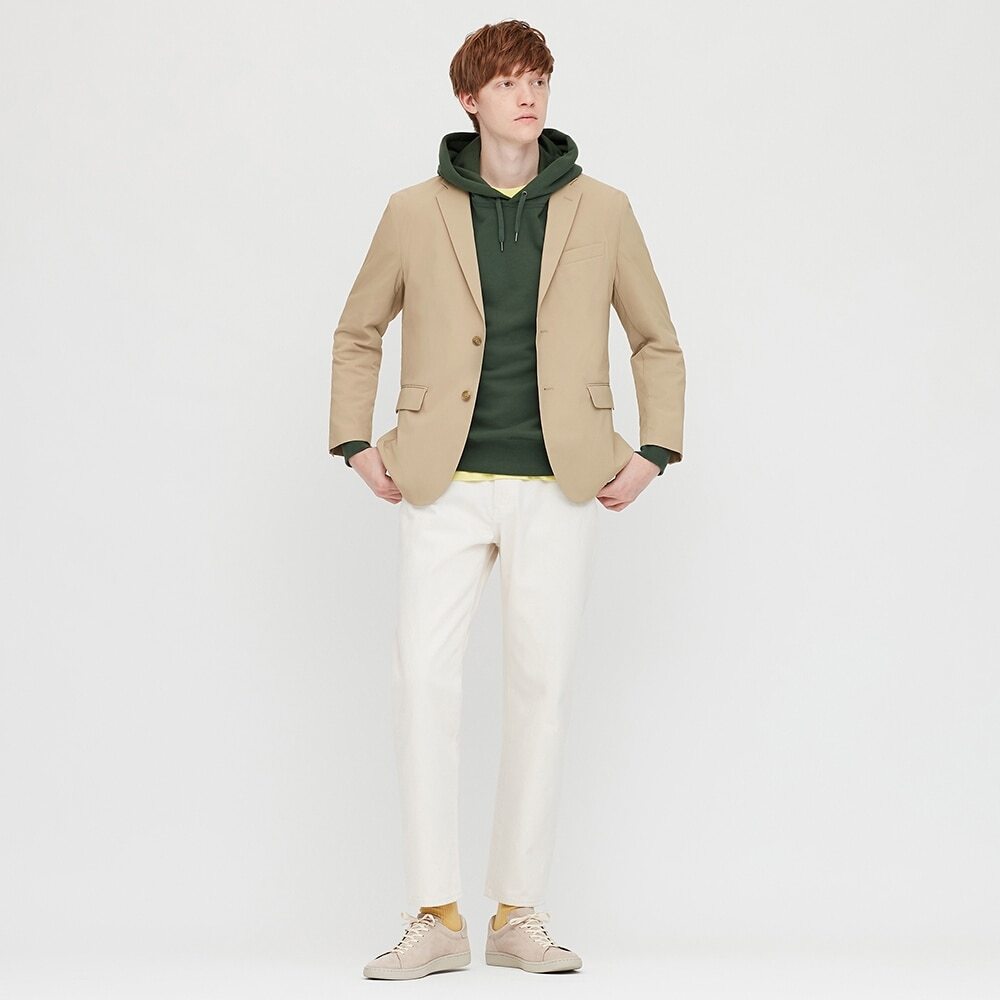 UNIQLOの感動ジャケットの中で、着丈が1cm、袖丈が2cm短めのタイプです。ベージュジャケットは大きく見せる効果があるので、この短め丈でスタイルアップが期待できます。形はベーシックなシルエットなので着回しがきき、様々なコーデに大活躍してくれますよ。軽さと動きやすさが魅力で、ビジネスにも使いやすいベージュジャケットです。