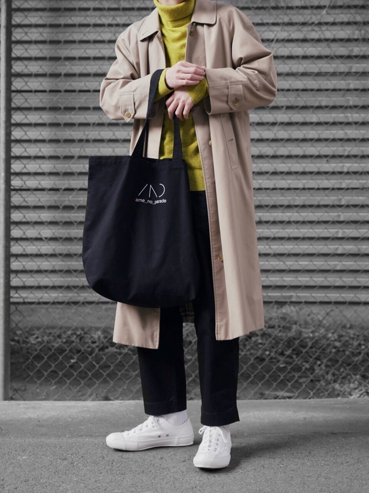 トップスにイエロータートルネックを合わせ差し色を加えることで、おしゃれ上級者な着こなしに仕上がっている大人の秋コーデです。イエローは、ベージュのステンカラーコートと馴染みつつコーデに明るさを加えてくれる効果が。明るいトーンのトップスとアウターを、黒のビッグトートバッグとチノパンで引き締めて色味に強弱を持たせています。