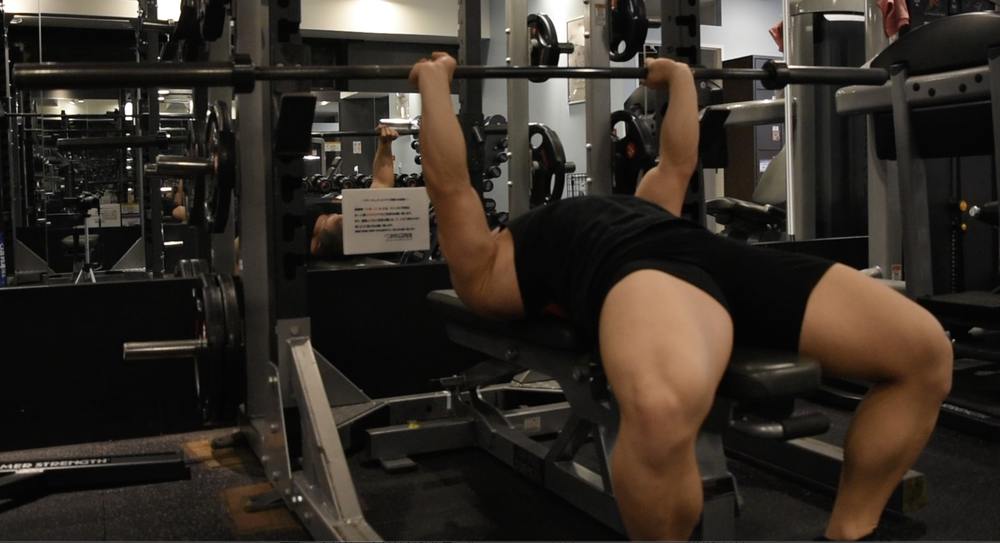 ここまで、通常のナローベンチプレスのやり方について解説してきました。続いて、応用編としてスミスマシンを使ったナローベンチプレスのやり方を紹介します。