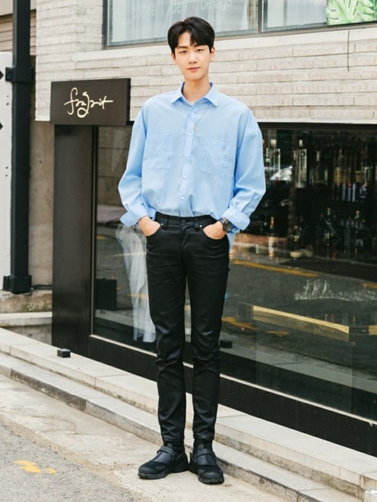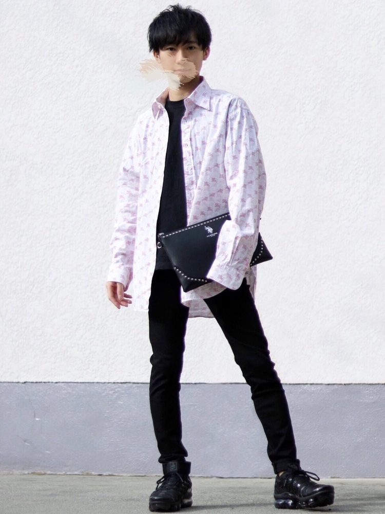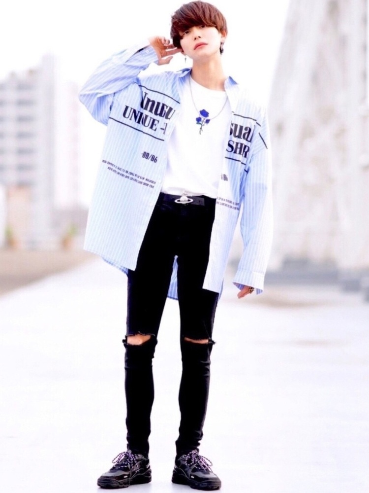オーバーサイズシャツをスキニーパンツにタックインして、メリハリを持たせたメンズコーデです。韓国風の着こなしは今人気の高いコーデスタイル。タックインした後は、少しだけベルト周りに余裕を持たせるようにシャツを軽く引き出し、調節することがおしゃれに見せるコツ。
