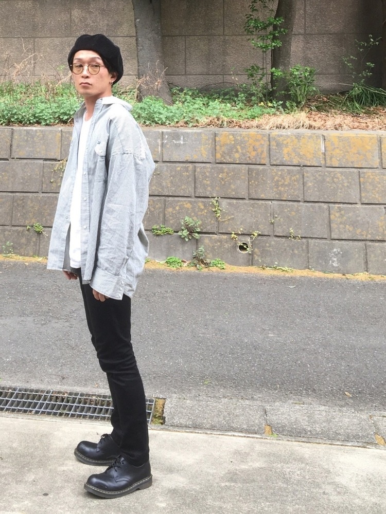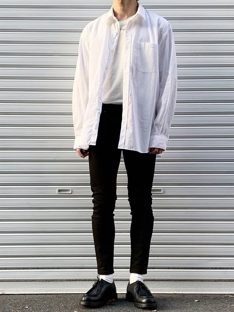 オーバーサイズシャツ×スキニーデニム×ギブソンシューズ