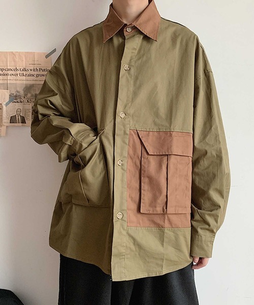 大きいポケットと、大胆な配色が目を引くおしゃれなオーバーサイズシャツです。MGVは韓国系アイテムが揃うブランド。ルーズなシルエットですが、程よく生地にハリ感があるためだらしなく見えず、どんなアイテムを合わせてもモダンに着こなすことができます。Tシャツの上からアウターとして羽織っても、トレンド感を感じさせるコーデに。