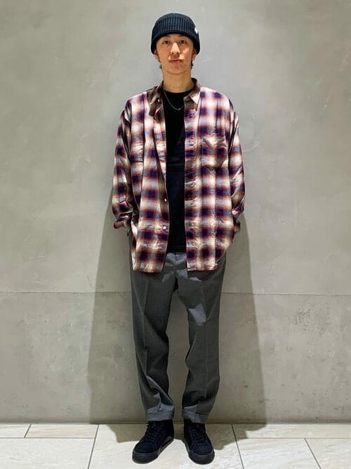 足元に向かって細くなるシルエットのテーパードパンツはシャツとの相性抜群。全体をゆるっと仕上げることで着こなし感がアップします。無地のパンツならチェックのシャツも大人っぽく見せることができます。