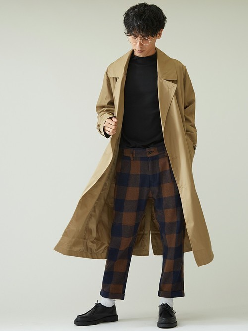 コート×テーパードパンツ