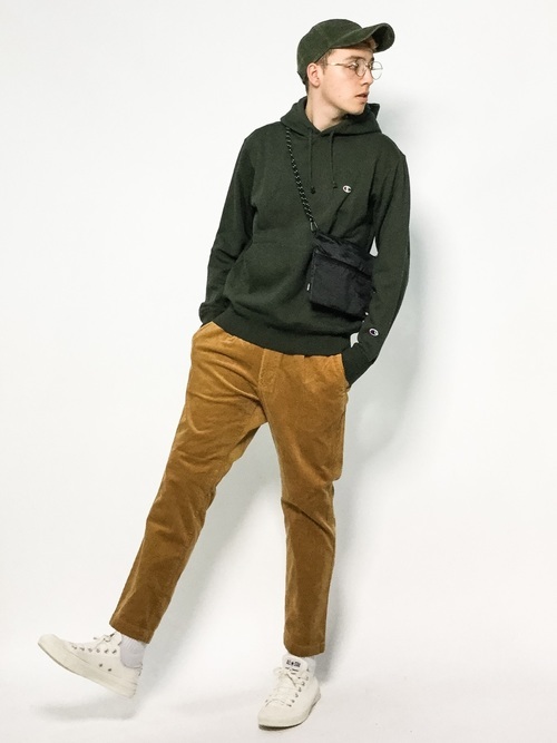 パーカー×テーパードパンツ