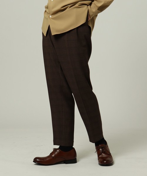 ややワイドなシルエットと、トラディショナルな柄がおしゃれなテーパードパンツ。ブラウン系の色はどんな色にも合わせやすく、コーデに一つ取り入れるだけで秋らしさをアップさせることができます。ワイドでもスリムでもないデザインなら、着まわしが効いて便利です。