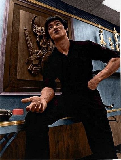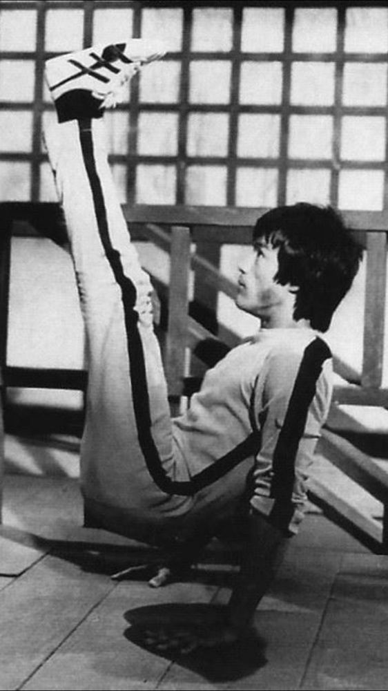 ブレない体幹と体の盾となる為の腹筋、ブルースリーの体つきの特徴にもなっている広背筋、スピーディーなパンチに必要な前腕、武術の基本である足腰の鍛錬などを重点的に行なっていたようです。モハメドアリのビデオを鏡に写してトレーニングをするなど、形にこだわらず取り入れていたことが伺えます。