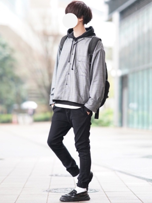 長袖オープンカラーシャツのインナーとしてパーカーを合わせたコーデは、学生にもおすすめのスタイルです。オープンカラーシャツは肌馴染みの良い素材で作られていて、程よい品を感じさせてくれます。
