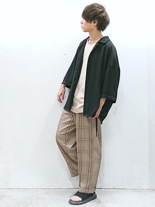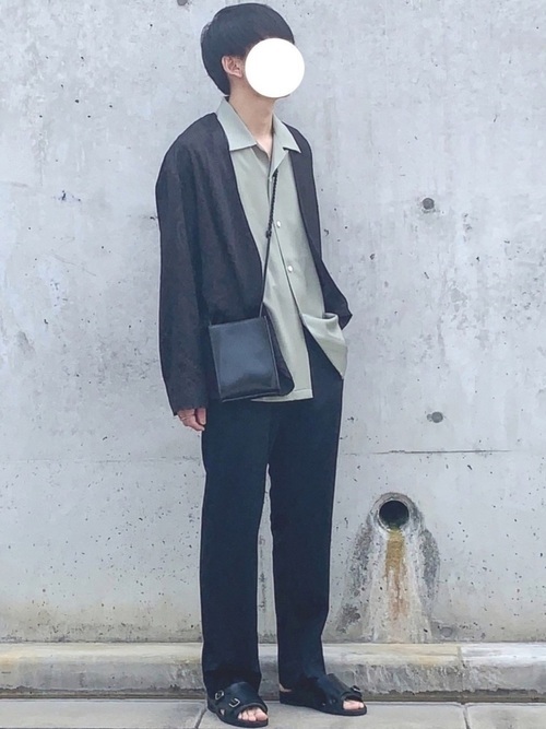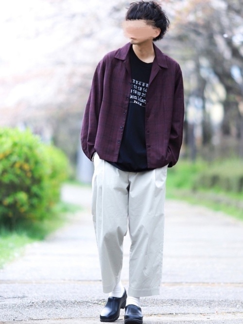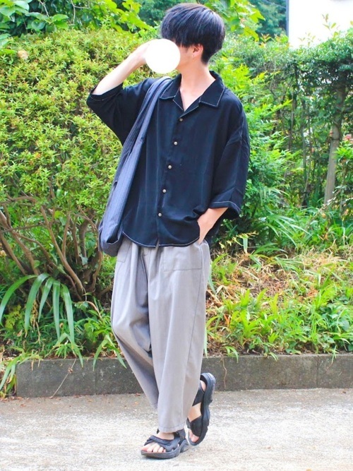 イージーパンツ×オープンカラーシャツ