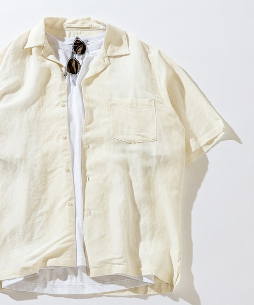 リネンとレーヨンの混紡素材で作られたオープンカラーシャツ。リネン独特の風合いに、通気性と速乾性、さらにレーヨンのほどよい光沢感がある1着です。インナーにタンクトップやカットソーを合わせて、さらっと羽織れば夏らしい涼しげなコーデに仕上がります。
