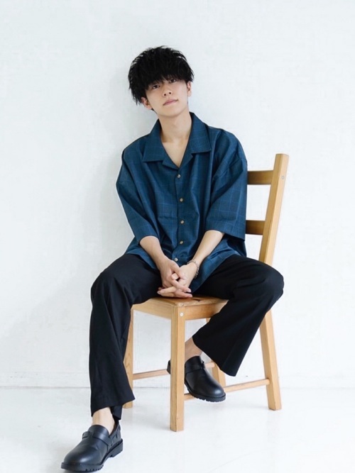 長袖オープンカラーシャツをジャケットのように羽織り、インナーは白を合わせて清潔感を演出。ドレスシューズを合わせることで、フォーマルのような上品さがある着こなしに仕上げています。