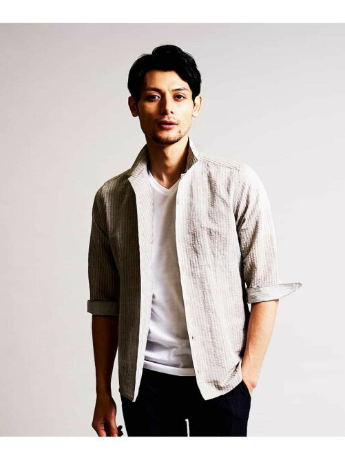 少々高価ですが、間違いのないデザインとブランドの七分袖シャツです。清涼感のあるシアサッカー地で着用していてもストレスフリー。高級リネンを使用しているので光により上品な光沢が期待できます。男らしさを格上げしたいと考えている方にぜひ!インナーにはVネックも相性良好です。