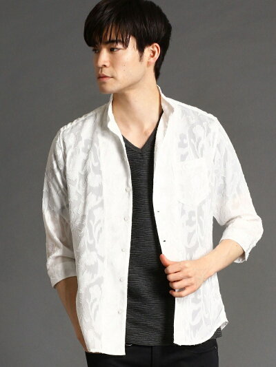 NICOLE CLUB FOR MEN ボタニカルジャカード七分袖シャツ